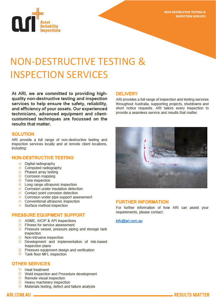 ARI has 15 years experience supplying specialist NDT and Inspection Services to a number of Sectors while maintaining the highest safety standards.